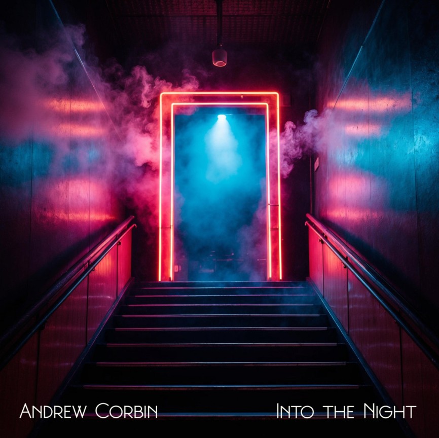 „An artfully composed fusion of synth-pop, dance, house, and synthwave—characterized by a rhythmically dominant bass, multi-layered synthesizer sounds, and ethereal vocals. Andrew Corbin emerges as a nocturnal ferryman on a (house) boat called “Into the Night,” journeying into elegant chaos. (-EW-)„